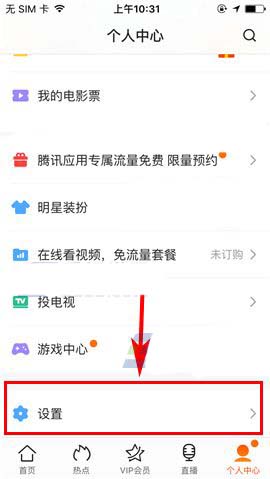 1)点开腾讯视频APP,首先点击首页右下角处的【个人中心】,然后上划界面进入【设置】;(如下图)