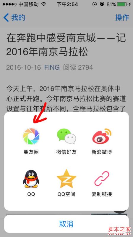 4.然后找一篇你的文章,分享到朋友圈;