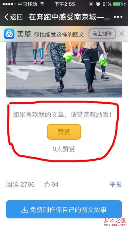 5.从朋友圈打开你分享出来的文章,就能看到最后的赞赏功能。