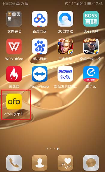 1、在我们的手机里面打开“ofo”软件,如下图所示: