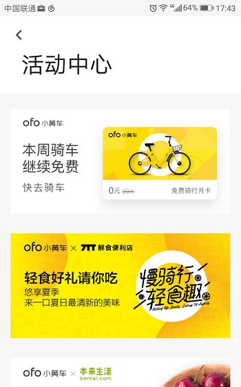 ofo共享单车想免费骑行,其中一共有两种方法,下面我们就来看看详细的教程。