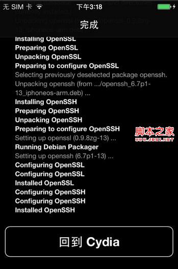 4、耐心等待安装完毕后,点击“回到Cydia”;