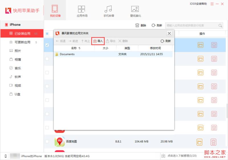 快用苹果助手导入视频到手机的教程