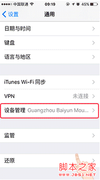 2、接着关闭该窗口,并在iPhone中打开“设置”→“通用”→“设备管理”;