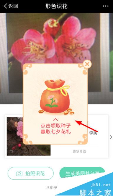 2、点击【扫花领花种】,进入AR扫描页面,对着你喜欢的花进行扫描,接着就如图点击;