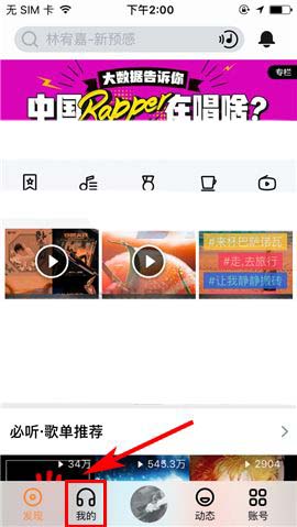 1)点开虾米音乐APP,首先点击首页下方的【我的】,然后选择自己创建的某个歌单;(如下图)
