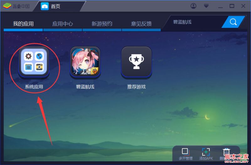 1、打开蓝叠安卓模拟器,然后在其界面打开“系统应用”;