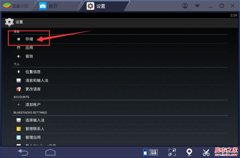 4、来到“存储”界面后先等它扫描完毕,之后点击“缓存数据”就可以清理蓝叠安卓模拟器所有应用的缓存了;