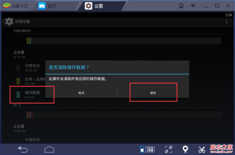 蓝叠安卓模拟器清除缓存的2种方法: