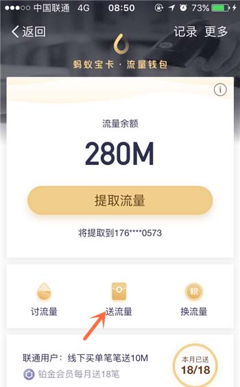 3、蚂蚁宝卡流量操作的自由度很大,在其中我们就可以看到“送流量”的选项,点击开始进行操作。