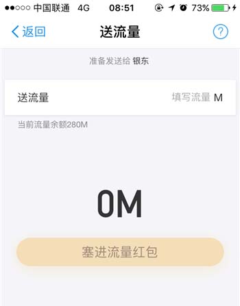 4、送流量环节中,我们可以设置送给好友的名字,以及送流量的数额,之后我们就可以把流量塞进里边了。
