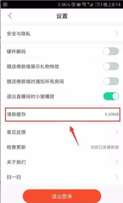 6、接着我们看到清除缓存,我们点击它下,就会将直播平台的缓存清理掉,如图。