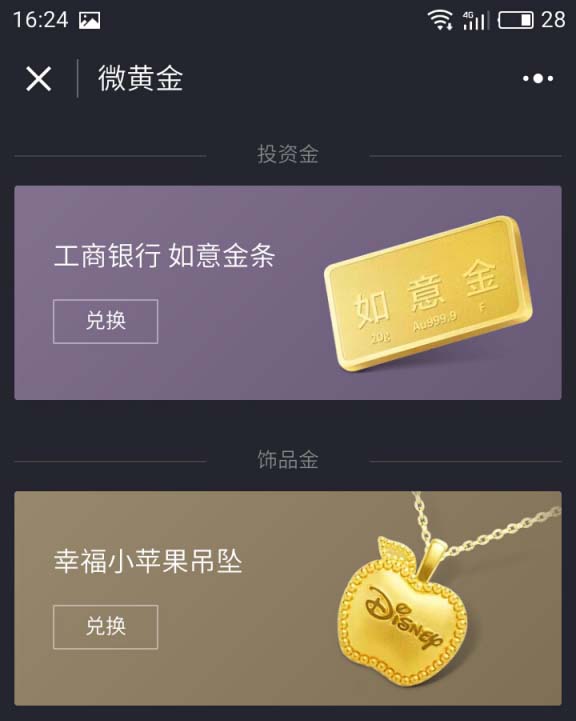 1、先打开腾讯微黄金的公众号,然后可以看到有一个黄金兑换的功能