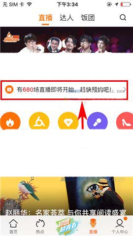 2)最后滑动界面选择自己感兴趣的直播,点击其后的【预约】便可。(如下图)