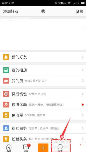 1、有些用户的微博页面是没有【微博签到好礼】这一项功能的,也就意味着不能直接进行签到领红包,可以点击【发现】,如图所示: