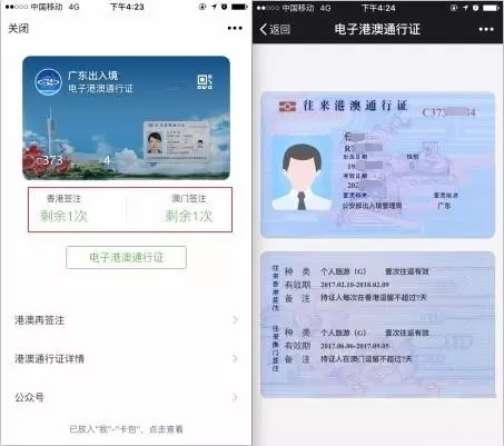 绑定之后,用户就可以方便的管理电子港澳通行证了。
