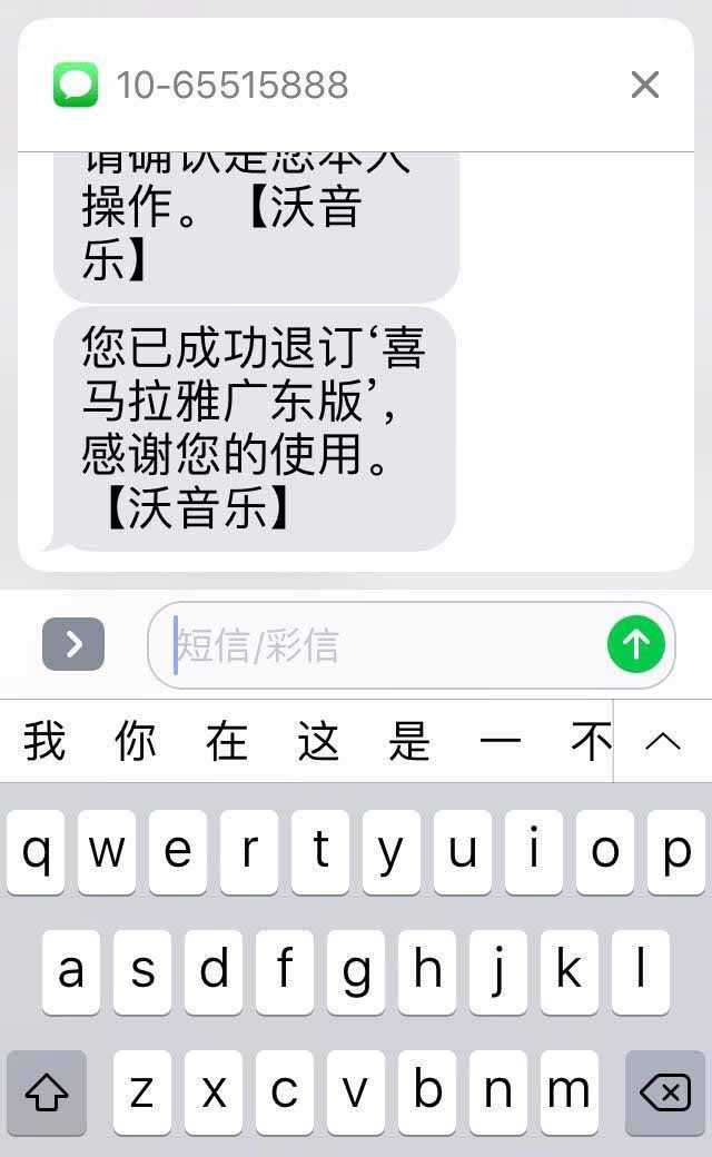 6、而后,会收到,退订成功的短信通知。