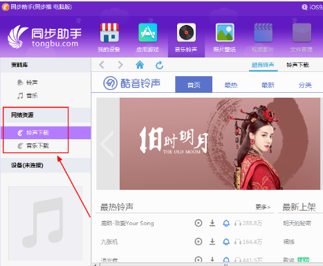 4、另外我们还可以在“网络资源”中下载网上的铃声及音乐哦!