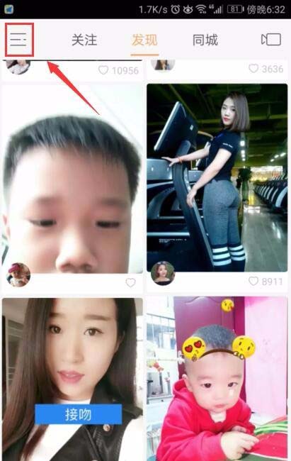 2、来到了软件首页,我们点击关注旁边的那3个黑色线条,如图。