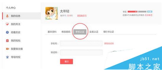 在我的信息中进行手机认证;
