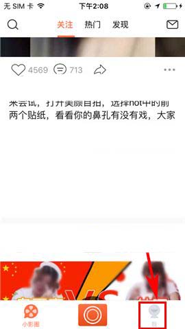 1)点开小影APP,首先点击首页右下角处的【我】,然后再点击屏幕右上角处的【设置】图标;(如下图)