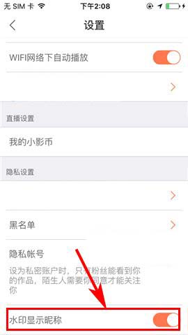 2)最后再开启【水印显示昵称】按钮。(如下图)