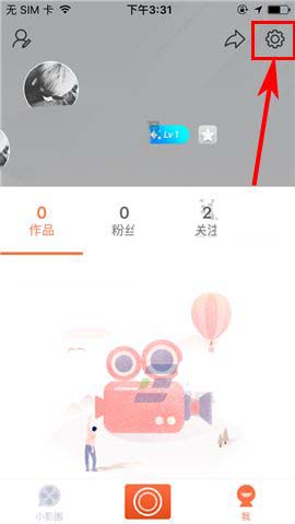 1)点开小影APP,首先点击首页右下方的【我】,然后点击界面右上角的【设置】图标;(如下图)