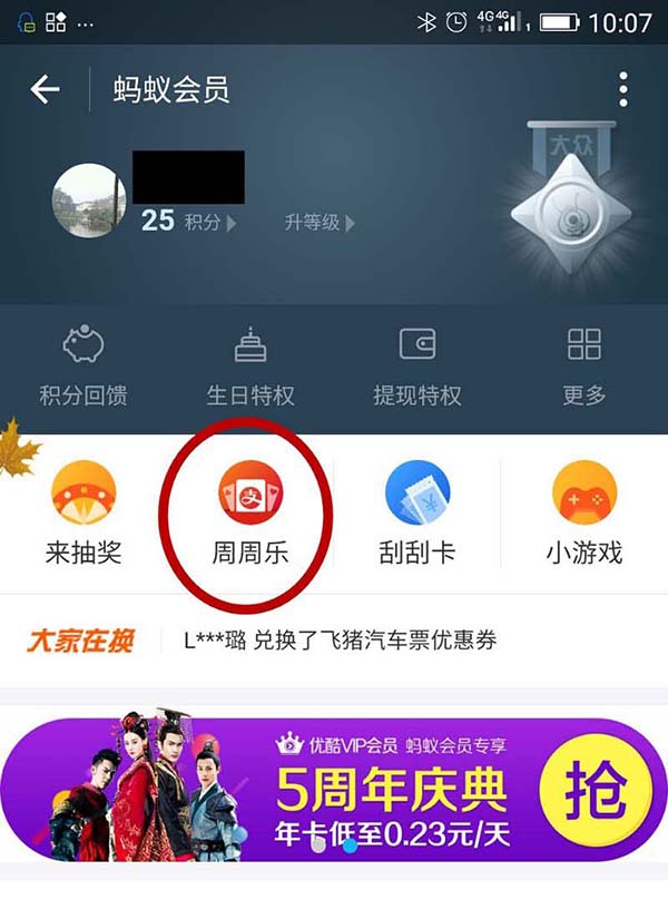 4、在“蚂蚁会员”里找到”周周乐“