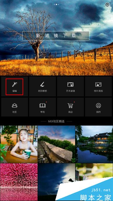 1、在MIX滤镜大师主界面中,点击功能栏目中的“编辑”;