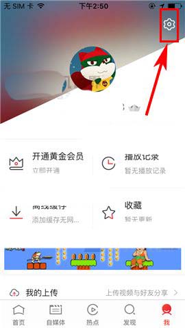 1)点开搜狐视频APP,首先点击首页右下方的【我】,然后再点击界面右上角处的【设置】图标;(如下图)