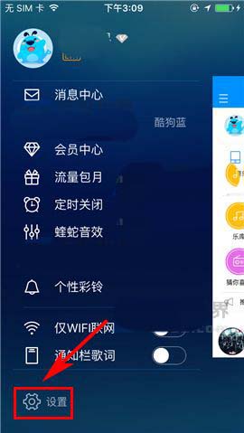 1)打开酷狗音乐APP,首先点击首页左上角处的三横线图标,然后进入【设置】;(如下图)