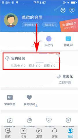 1)点开携程旅行APP,首先进入首页右下角处的【我的】,然后点击【我的钱包】;(如下图)
