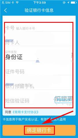 4)最后再完成界面中银行卡验证信息,点击【绑定银行卡】即可。(如下图)