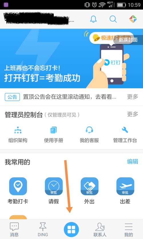 2、在钉钉界面的最下方,选择工作台。