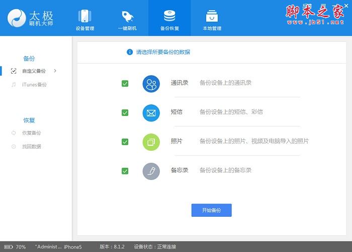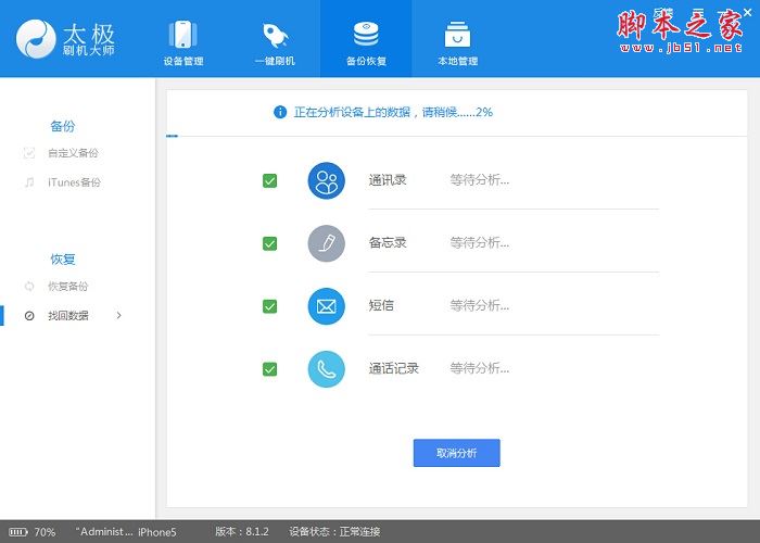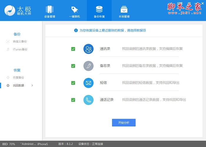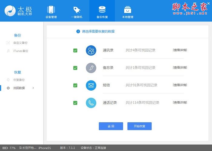太极刷机大师如何找回误删的通讯录、备忘录、短信和通话记录的方法: