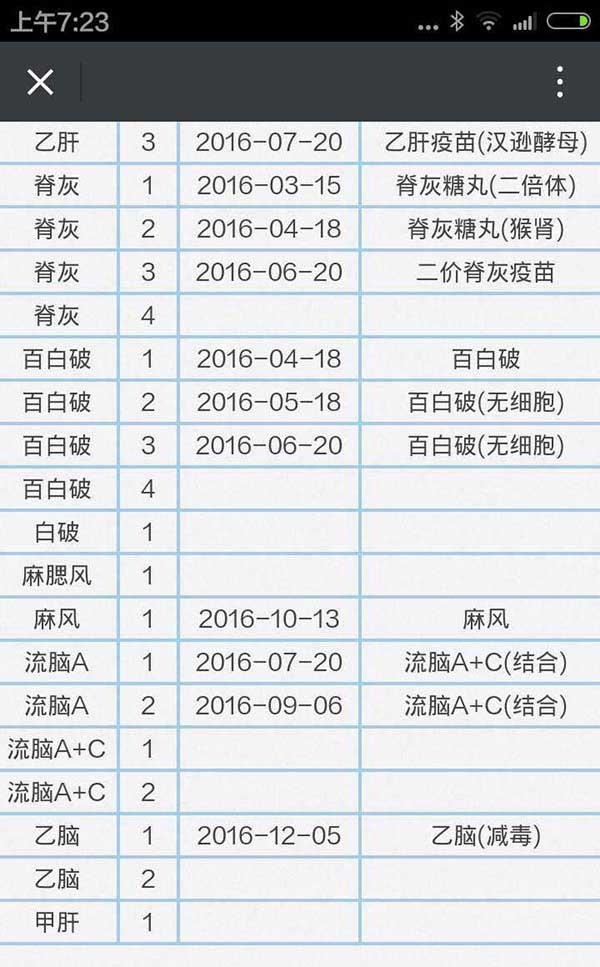 6、往下拖还可以看到下次需要打的疫苗品种和时间,是不是很方便呢?
