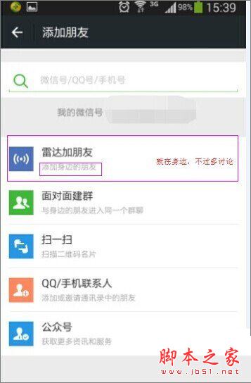 2、其次就是雷达加朋友,这种加好友方式是两个人都在旁边的,所以可以不用过多讨论了。