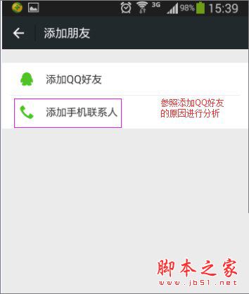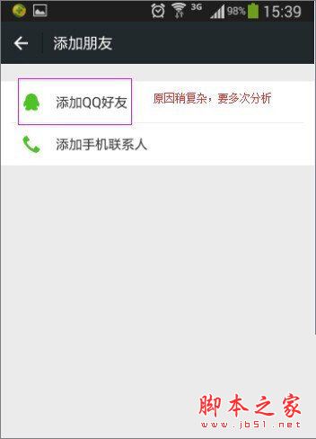 5、通过手机通讯录查找微信好友,失败原因参考通过QQ好友列表查找方式。但是有时候手机通讯录会出现开通微信用户不显示的情况,这时候你只可以重新启动通讯录,再次添加就行。