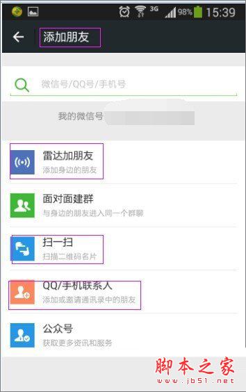 我们先要清楚微信添加好友/朋友的几种方法才能一一分析,那,么通过微信的添加朋友界面我们得知,添加微信好友有:通过微信号码查找、雷达加朋友、通过QQ好友列表查找、通过手机通信录查找和二维码扫描名片查找五种好友添加方式。