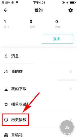 1)点开荔枝FM,首先点击首页右上方处的个人用户头像,接着上划屏幕进入【历史播放】;(如下图)