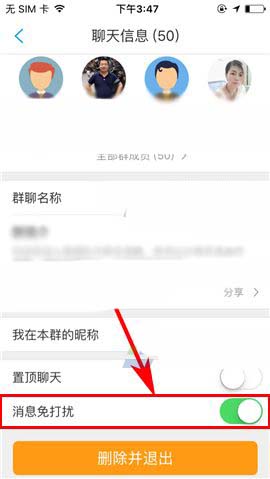 3)最后再上划界面开启【消息免打扰】功能开关便可。(如下图)