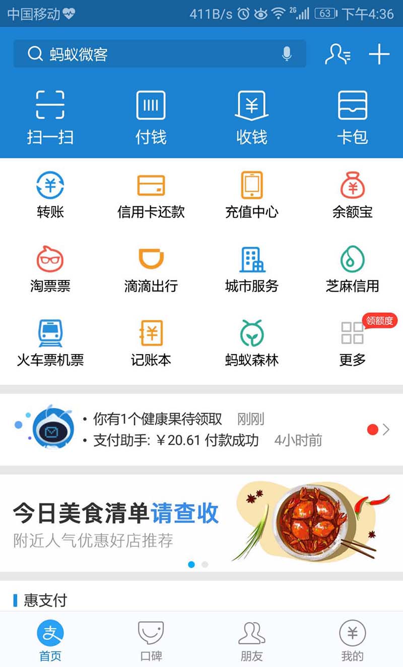 1、首先手机下载支付宝,下载安装好之后打开支付宝