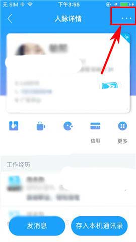 2)接着选择列表中的相关用户,然后点击其人脉详情页中右上方的【...】图标;(如下图)