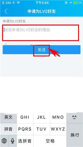 4)最后在输入完申请理由后点击【发送】即可。(如下图)