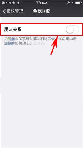 3)然后选择并点击相关的已授权过的应用,最后再关闭【朋友关系】就完成啦~(如下图)