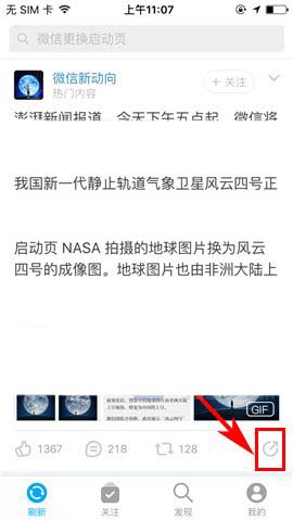 1)点开即刻APP,首先在首页中找到自己感兴趣的有意义的资讯,点击其右下角处的【分享】图标,然后点击【生成卡片】;(如下图)