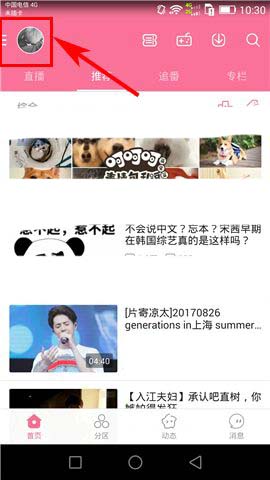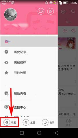 1)点开哔哩哔哩动画APP,首先点击首页左上角处的个人用户头像,然后进入新界面左下方的【设置】;(如下图)