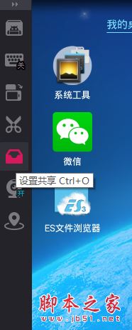 3、点击天天模拟器左侧,设置共享按钮。就是好像一个盒子那个东西。