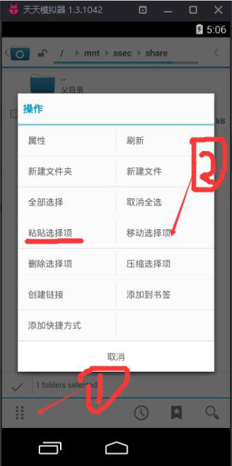 在模拟器里,找到你要导入的文件,点击左边的方框,会打上勾(代表文件被选中了),接着按照上一步的路径,打开share文件夹,点击左下角的按钮,再点击“移动选择项”,或者“粘贴选择项”。接着等。。。。