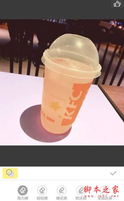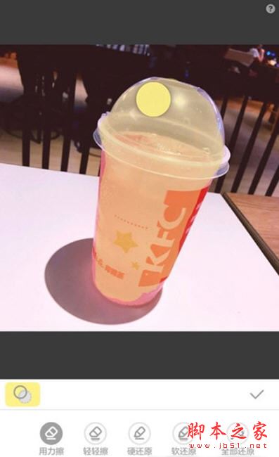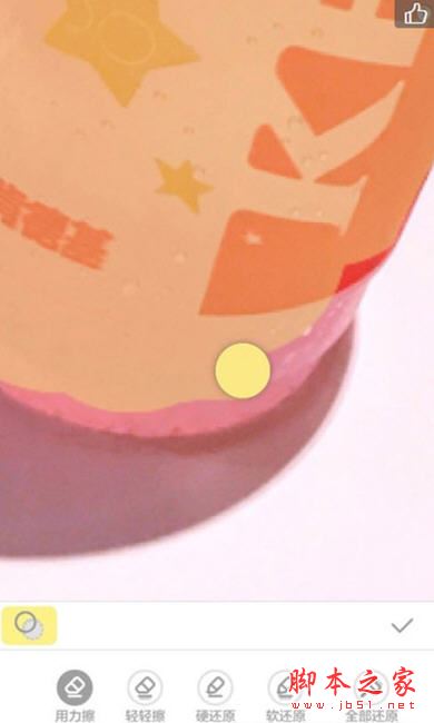 3、用「元素」里的「遮罩」功能把主体杯子的大轮廓擦出来,再将图片放大擦出边缘。